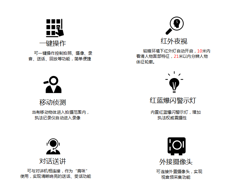 PA真人视讯官网DSJ-200F 执法仪(法院/政府/城管)拍摄像素高达5000万,广角镜头137,拍摄画面精细而全面,大容量电池支持陆续在工作12小时不断电